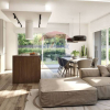 Lingresso indipendente da via Madre Teresa di Calcutta conduce a una casa funzionale e raffinata. La zona giorno open space è illuminata da grandi vetrate che si affacciano sul giardino, creando un dialogo fluido tra interno ed esterno.