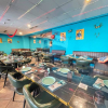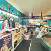 Bancone preparazione Sushi completo di accessori, possibilità di ripristinare il forno a legna per pizza nascosto dietro ad un muro di cartongesso, bancone completo di cassa e servizio di prenotazione elettronica tramite cellulare, due frighi bar per bibite, servizio alla spina.