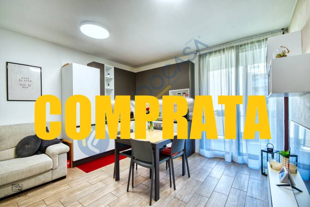 Questo appartamento è pronto per te. Entrando troviamo un soggiorno con cucina a vista e accesso al balcone di generose dimensioni, una camera matrimoniale ed un bagno finestrato con doccia. La pavimentazione è in grès porcellanato in tutta la soluzione, gli infissi sono in alluminio con doppio vetro, è presente l'impianto di condizionamento a pompa di calore in soggiorno e in camera e la porta d'ingresso è blindata.