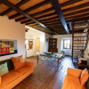 Al piano di ingresso ci accoglie un soggiorno doppio, dove travi a vista, pavimenti in cotto e un caratteristico camino in pietra raccontano la storia del luogo.