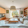 Tutti gli ambienti si affacciano direttamente sul giardino grazie alle ampie vetrate, favorendo una perfetta connessione tra interno ed esterno.