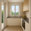 Ingresso principale che affaccia sulla cucina a vista sulla destra, mentre sulla sinistra vi è l' ampio soggiorno (dal quale si può ricavare una terza cameretta che accede alla zona notte). Andando dritto è infatti presente un piccolo corridoio/disimpegno che offre un ripostiglio e l'ingresso alle attuali 2 camere matrimoniali e ai due bagni, di cui uno finestrato.
