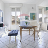 L'appartamento è venduto arredato e la cucina è a vista, creando un ambiente moderno e luminoso.