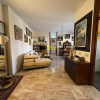Pavimentazione in marmo in tutta la zona giorno, pavimentazione in gres ceramica in soggiorno (in appoggio), cucina e nei servizi, parquet in camera matrimoniale e nella camera da letto adiacente, gres nella terza camera da letto.