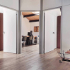 La suddivisione interna in stanze è stata realizzata attraverso un sistema di pareti divisorie appositamente pensate per uffici e riposizionabili, qualora le esigenze di spazio dovessero cambiare. Limmobile è autonomo e pensato per offrire un ambiente di lavoro funzionale e confortevole con travi a vista dal suo interno.