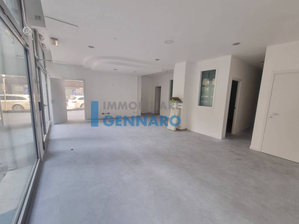 Questo locale commerciale si trova al piano terra di un condominio, offre una superficie totale di circa 210 metri quadrati, di cui circa 130 mq al piano terra e circa 80 mq al piano interrato. Si compone al piano terra da due vani vetrinati, due vani retrostanti e dal servizio, attraverso una scala di collegamento interno si raggiunge l'ampio scantinato composto da un unico vano.
