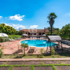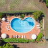 Piscina di forma tondeggiante armoniosamente integrata nellambiente con ampio solarium;