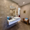 La zona pranzo e la cucina moderna, attrezzata con isola centrale e elettrodomestici integrati, sono pensate per chi ama la convivialità e la cucina di qualità. La zona notte comprende più camere da letto spaziose e bagni dal design ricercato, con pavimenti in pietra naturale, sanitari sospesi e dettagli di gusto contemporaneo.