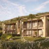 Al primo piano si trovano anche due appartamenti indipendenti con giardino privato e ampie terrazze con vista sul lago. A seconda della posizione, le aree esterne sono esposte a nord o a sud. Gli spazi abitativi, ricchi di luce, si aprono sulla terrazza attraverso ampie superfici vetrate e creano un collegamento fluido tra interno ed esterno. Oltre alla zona giorno con cucina e zona pranzo, gli appartamenti offrono due camere da letto, un bagno, locali accessori funzionali e un'area fitness privata.
