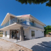 - piano terra: appartamento con due ampie zone giorno, cucina attigua con pareti in vetro, 4 servizi finestrati con antibagno, portico di 14 mq e spazio esterno pavimentato di circa 190 mq attorno la struttura