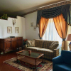 Il cuore dell'appartamento è il soggiorno luminoso, un invito al relax con il suo comodo divano-letto, un raffinato tavolino in vetro e mobili in legno intagliato che richiamano uno stile senza tempo. Tappeti soffici e tende eleganti valorizzano la luce naturale, creando un'atmosfera calda e accogliente.