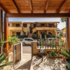Il piano terra accoglie un luminoso soggiorno con angolo cottura, servito da bagno e caratterizzato da doppia uscita sui cortili esterni: quello frontale con pergola in legno, perfetto per momenti di relax, e quello retrostante, riservato, completo di pergolato e predisposizione barbecue, ideale per pranzi e cene allaperto.
