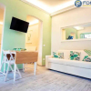 All'interno è così suddiviso: ingresso nella luminosa zona pranzo con cucina a vista e locale tecnico con lavanderia, e zona notte separata da un funzionale e artistico doppio arco attraverso il quale accediamo alla camera matrimoniale, anti-bagno e bagno.