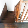 All'interno e' visibile l'orditura del tetto in legno al piano primo ( camera e bagno ) e la copertura del soggiorno in legno al piano terra ove e' presente anche un caminetto. Il solaio e' in legno ed i pavimenti della camera in listoni di legno. Gli altri pavimenti in ceramica monocottura marrone. Il bagno ha pavimenti in marmette verde scuro di caolino e rivestimenti in tessere di mosaico bianco-verde.