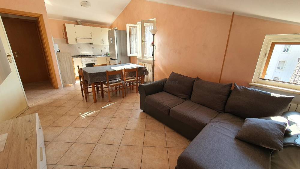 Grazioso appartamento posto al piano terzo senza ascensore in piccola palazzina di sole sei unità abitative. Dal primo portone blindato si accede al terrazzo abitabile di 9 mq con angolo lavatoio e caldaia esterna. Attraverso il secondo portone blindato si accede al soggiorno con angolo cottura, con due finestre e bella veduta sul Colle dell'Annunziata. Disimpegno,ampia camera matrimoniale, una camera singola, un bagno con finestra e doccia. La palazzina e gli interni sono stati totalmente ristrutturati nel 2000. L'appartamento si presenta in ottimo stato generale con infissi in legno doppio vetro e persiane in pvc. Pavimento in gres porcellanato color cipria su tutte le superfici. L'immobile viene venduto arredato come da foto. Al piano strada una cantina con volte a mattoncini, bagnetto e doppio accesso, dal piano strada e dall'atrio del condominio. Perfetta anche per riporre cicli e motocicli. L'appartamento si trova a pochi passi da Piazza Roma e dalle principali attività commerciali del centro storico.