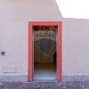 Vetrina in ferro/vetro con saracinesca a maglia aperta; finestre con inferriate