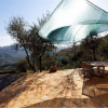 La proprietà include una spaziosa terrazza pavimentata esposta a sud-ovest, un terreno terrazzato adibito a uliveto e frutteto, oltre a una piscina con vista mozzafiato condivisa con un'altra proprietà. Le due abitazioni condividono esclusivamente la piscina, il solarium, l'impianto fotovoltaico e i vani tecnici situati sul retro. Il parcheggio, la terrazza, il terreno e il sentiero che conduce alla piscina sono di uso esclusivo e non gravati da servitù di passaggio.