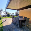 Il giardino, è dotato di una comodissima pergola bioclimatica, ideale per pranzi e cene all'aperto e da un caratteristico forno a legna in pietra con barbecue.