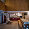 Pavimenti in piastrelle nella zona a giorno e legno in quella sovrastante. Infissi in legno con doppio vetro.