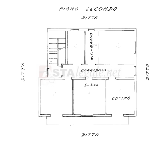 E' collocato al piano secondo, con entrata dal vano scala comune.