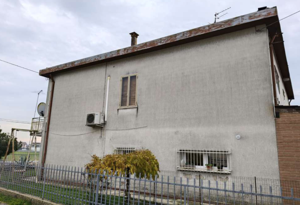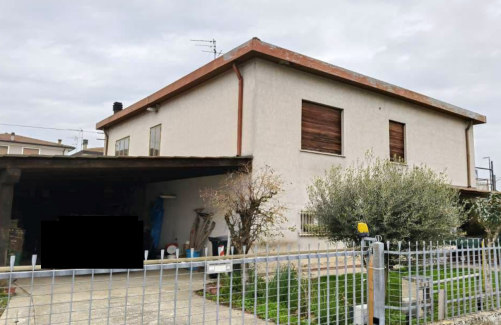 Trattasi di una casa composta da piano terra con garage di 31mq, sgombero/cantina di 25mq, w.c. e cucina. Al piano primo troviamo tre camere, disimpegno, bagno, pranzo e soggiorno.