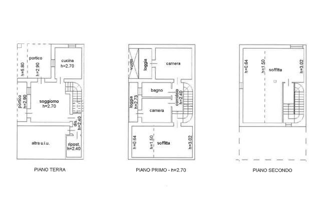 Al piano terra troviamo un portico, soggiorno, cucina, ripostiglio.