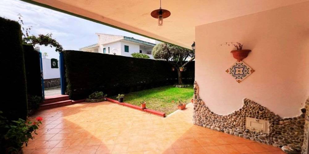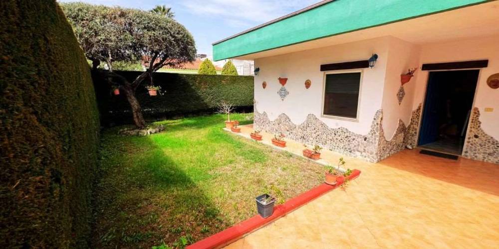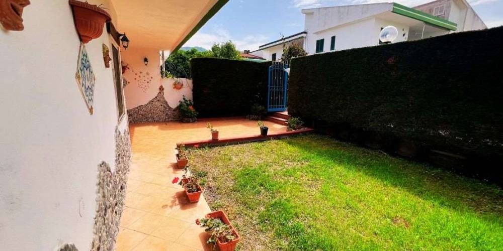 La villetta è dotata di un giardino semi pavimentato, ampio e comodo, perfetto per trascorrere momenti all'aperto in totale relax. Lo spazio esterno è ben tenuto e valorizza ulteriormente la proprietà.