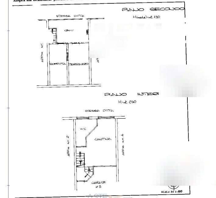 Fonte Nuova (Rm) : Quota pari a 1/1 del diritto di proprietà su villino a schiera da cielo a terra con annesse due corti, sito in Fonte Nuova (RM), Via Demostene n. 7/B, distinto con l'interno 3, disposto su quattro livelli, composto al piano interrato da locale garage, cantina e bagno, al piano terra da soggiorno, cucina, al primo piano da 3 camere e 1 bagno e al secondo piano da locale soffitta e terrazzo.