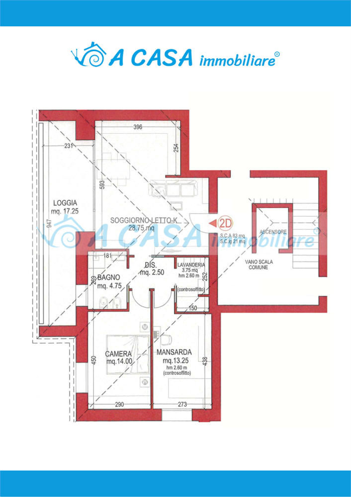 Ingresso in ampia sala con angolo cottura, tramite disimpegno si giunge in zona notte caratterizzata da due ampie camere da letto, comodo bagno e una lavanderia.