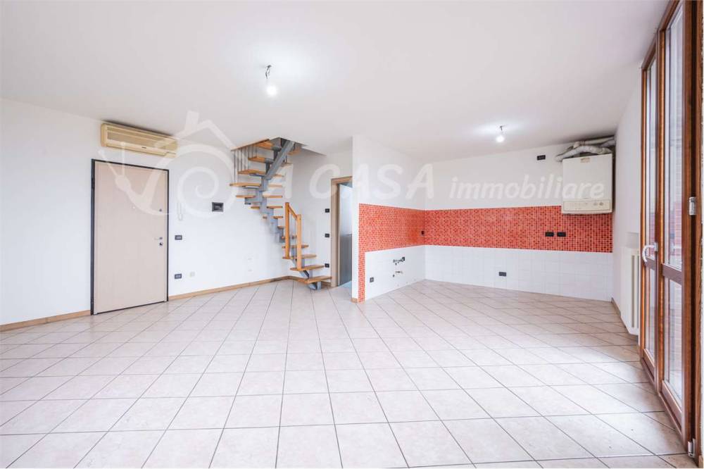 Questa è la soluzione che fa per te, proponiamo in vendita in esclusiva appartamento del 2007 , l'immobile è posto al primo piano  in palazzina di solo quattro unità abitative, disposto su due livelli ed è composto da: ingresso in ampio salone caratterizzato da cucina open space serviti da un balcone dove poter ammirare un bel panorama, bagno e ripostiglio, tramite scala interna si arriva al piano superiore dove troviamo due camere, uno studio ed un bagno con box doccia. L'immobile viene completato da una cantina, un'autorimessa comoda, un posto auto all'interno del cortile condominiale ed un giardino.