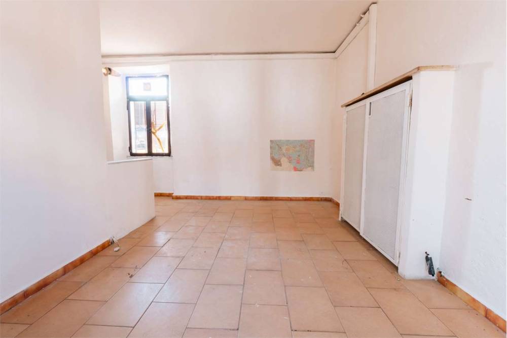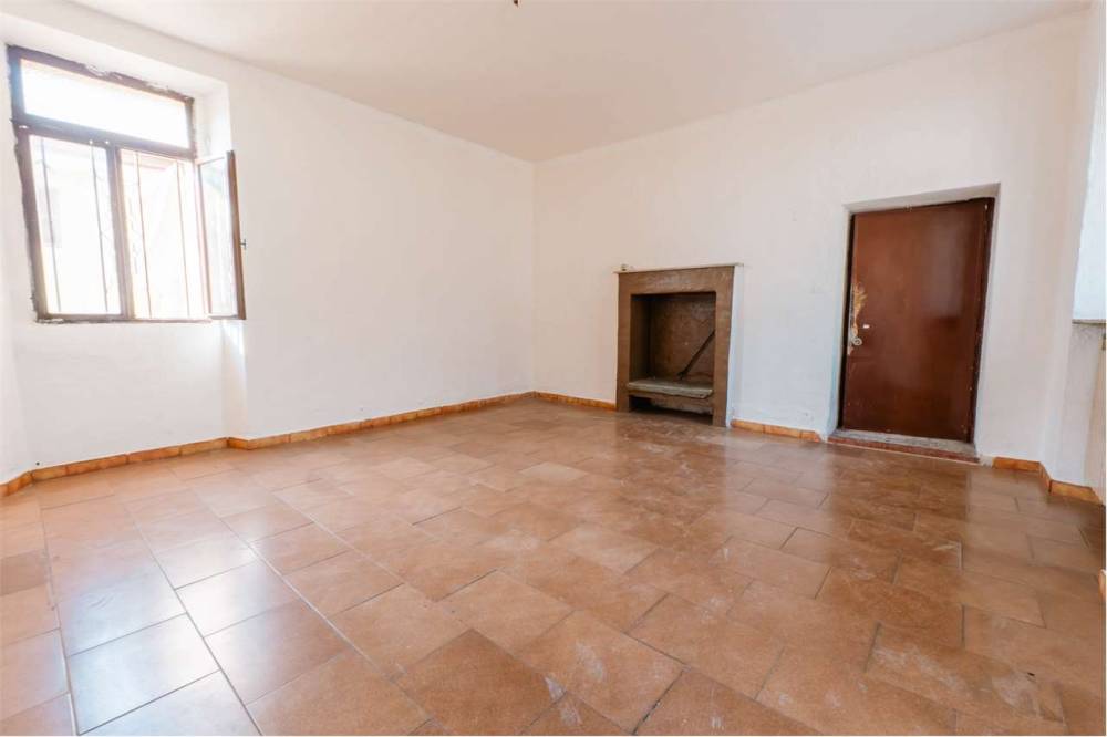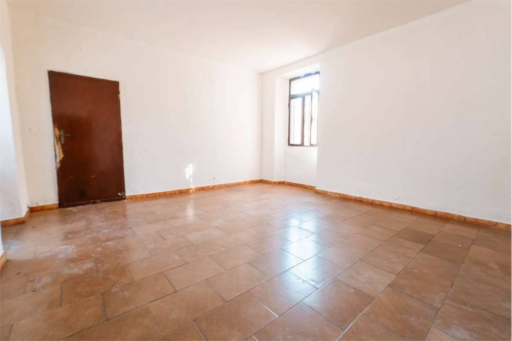 L'appartamento è posto al secondo piano di una palazzina storica di tre piani senza ascensore. Internamente si presenta completamente da ristrutturare e attualmente è composto da un tinello con cucinino a vista e accesso al balcone che affaccia sull'interno cortile, due camere con affaccio sulla via del centro storico e un bagno finestrato con vasca. L'immobile dispone di più accessi: dal vano scale condominiale e dal ballatoio, ed è dotato di porte-finestre oltre alla porta principale.
