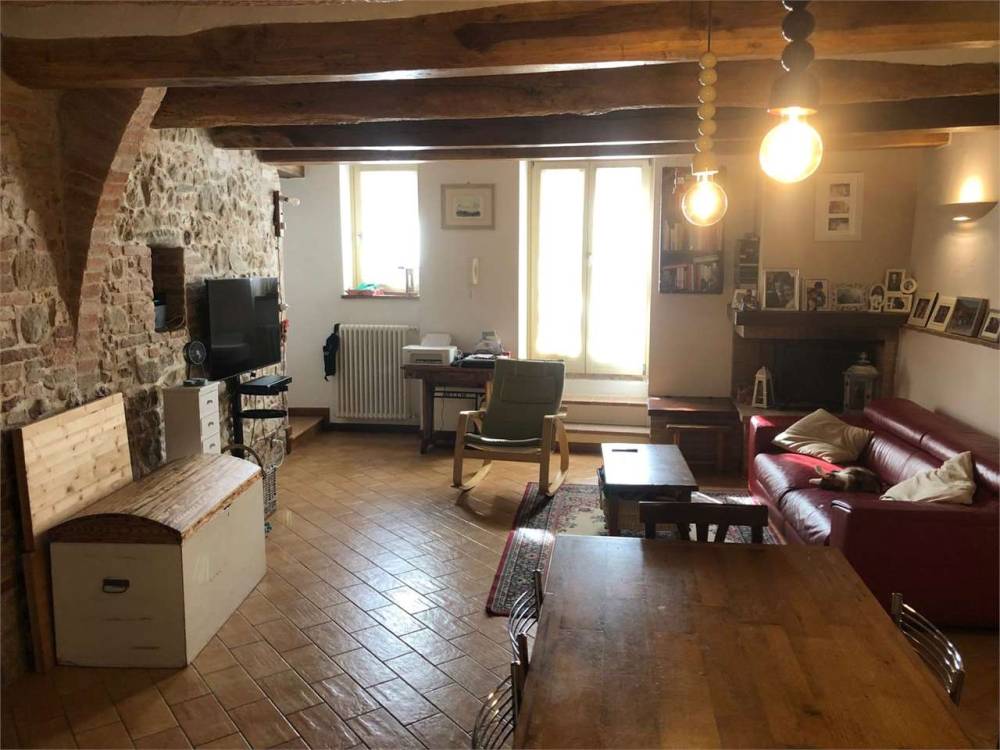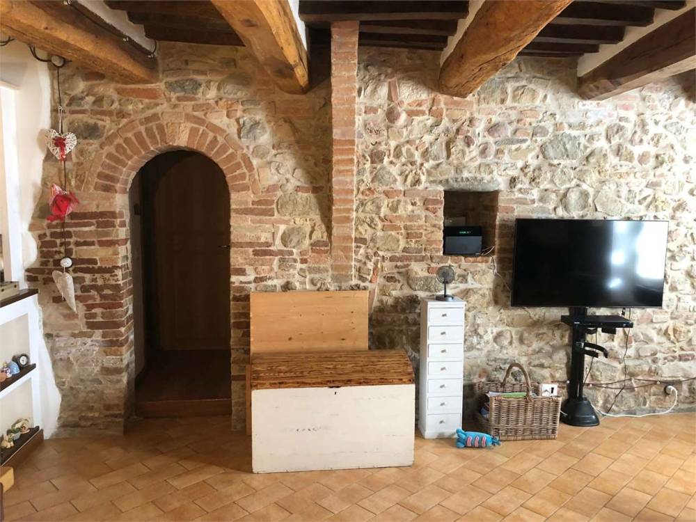 Tra Perugia e Marsciano, nel caratteristico borgo medievale di Cerqueto, proponiamo in vendita caratteristico appartamento al piano terra della superficie commerciale complessiva di circa 100 mq. L'immobile, facente parte di uno stabile recentemente ristrutturato, è composto da doppio ingresso, ampio soggiorno con cucina a vista su misura con camino, due camere, bagno con finestra e doccia, locale lavanderia e corte esterna di pertinenza esclusiva. L'appartamento è stato recentemente ristrutturato nel rispetto delle costruzioni tipiche locali, con materiali di pregio.