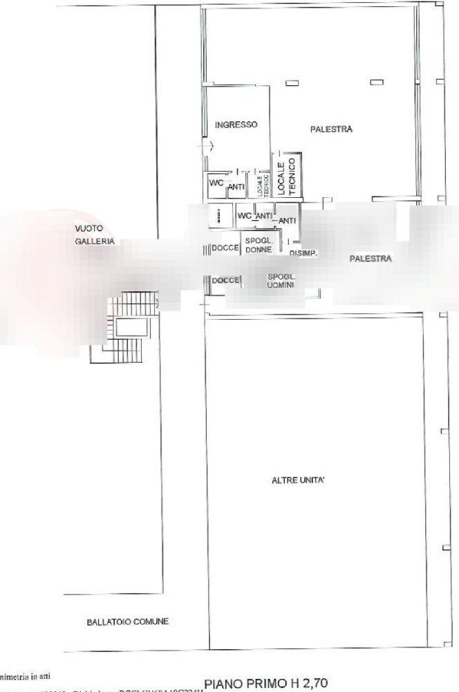 Palestra al piano primo con locali accessori, spogliatoi e servizi igienici per una superficie commerciale complessiva di 280 metri quadri, facente parte del complesso condominiale denominato "Codominio Manzoni" situato a Montegrotto Terme (PD) in via Galleria Manzoni.