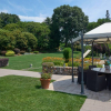 Suggestiva veranda coperta nel cuore del giardino, attrezzata con barbecue in muratura e forno a legna tradizionale, perfetta per cene conviviali e serate allinsegna del gusto