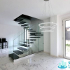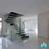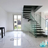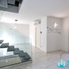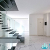 Dal giardino si accede al piano terra dove troviamo un unico ambiente open space da adibire a cucina a vista e soggiorno  zona living, idealmente suddivisi dallelegante scala di design con struttura in vetro e gradini in legno. Un ampio disimpegno dà laccesso al bagno del piano. Ampie portefinestre, che rendono molto luminosi gli ambienti, permettono di fruire della parte esterna, sia al giardino sia al cortile, con accesso carraio per i posti auto.