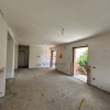 Piano terra: zona living luminosa con cucina e bagno di servizio.