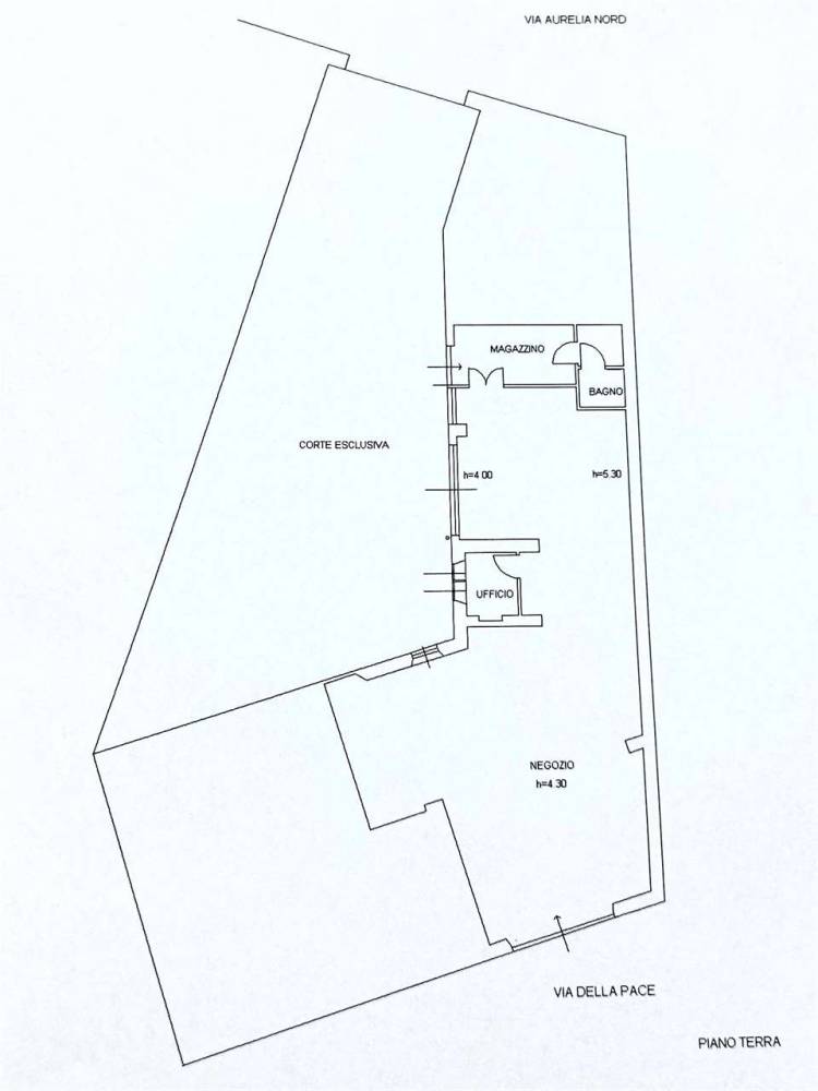 L'immobile dispone di una corte esterna esclusiva di circa 180 mq, accessibile da Via Aurelia Nord, dotata di una tettoia coperta di circa 40 mq.
