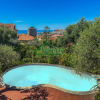 Villa Cascine - Villa con giardino e piscina in stile Ligure con le tipiche colorazioni giallo - ocra - rosso, muri in pietra locale, tetto in coppi, pavimentazioni in cotto e rifiniture in legno, ubicata in zona residenziale di prestigio, molto tranquilla e con lesclusivo vantaggio di essere a soli 500 metri a piedi dall'isola pedonale di Via Ospedale, proprio vicino alla celebre Villa Grock, con esposizione a Sud-Ovest e bellissima vista sulla città fino al mare e sul promontorio di Porto Maurizio.