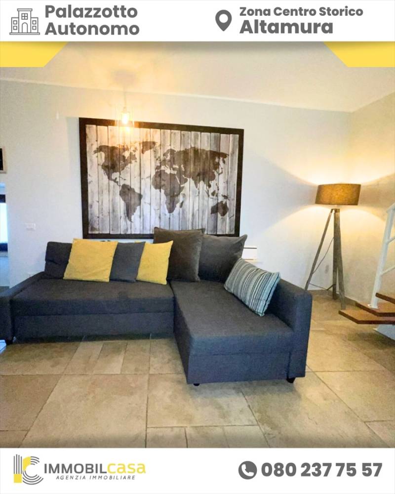 Nella zona di Corso Federico II, nel bellissimo centro storico di Altamura, proponiamo la vendita di un grazioso e caratteristico palazzotto indipendente, composto da piano terra e piano rialzato con due ingressi separati, attualmente adibito a b&b.