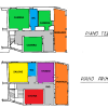 Piano terra: portico d'ingresso, ampio salone open space, 2 camere, bagno.
