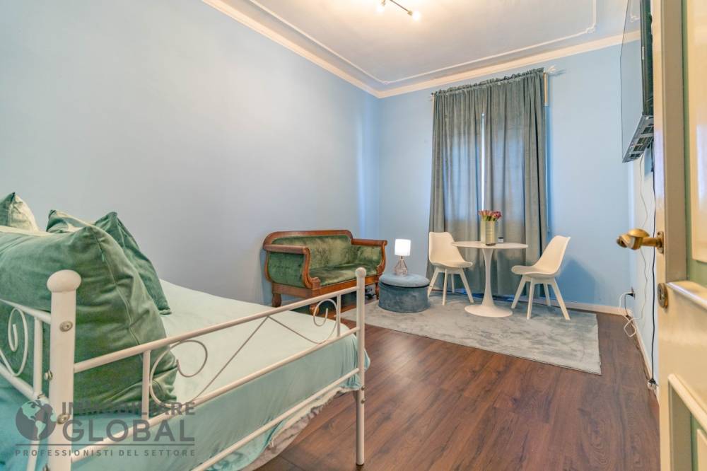 L’appartamento, 58 mq commerciali, si compone di ampio ingresso con armadio a muro, soggiorno con suggestiva vista sulla cupola della Chiesa di San Pietro, cucinotto separato, camera matrimoniale e bagno.