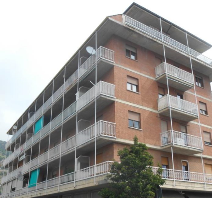 Appartamento situato ad Aosta (AO), facente parte del "Condominio Aosta" , di sei piani fuori terra, oltre a due piani sotterranei. Internamente si compone di: al piano quinto un ingresso su soggiorno, una cucina, tre camere da letto, un corridoio, un disimpegno, due bagni e un terrazzo su tre lati. L'appartamento ha in dotazione una cantina posta al piano secondo interrato, una autorimessa al piano primo interrato con portone basculante in lamiere preverniciata.