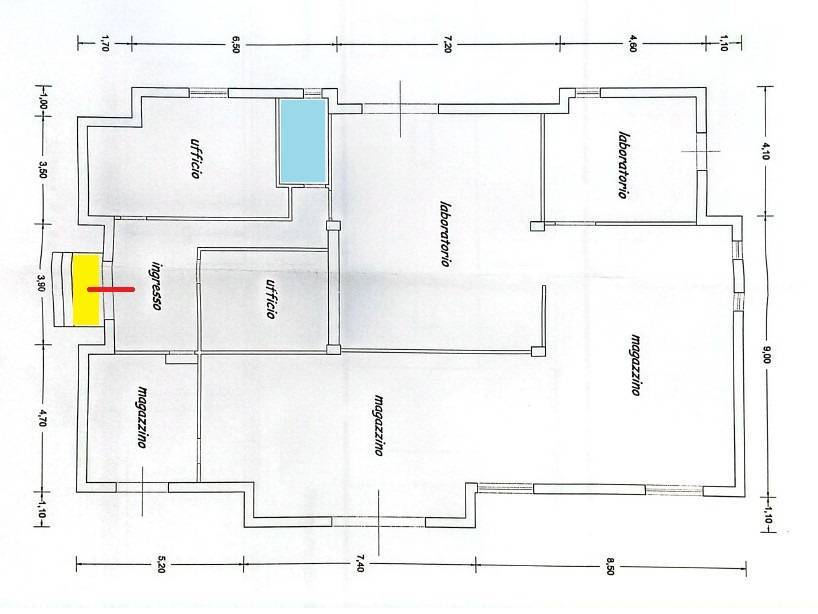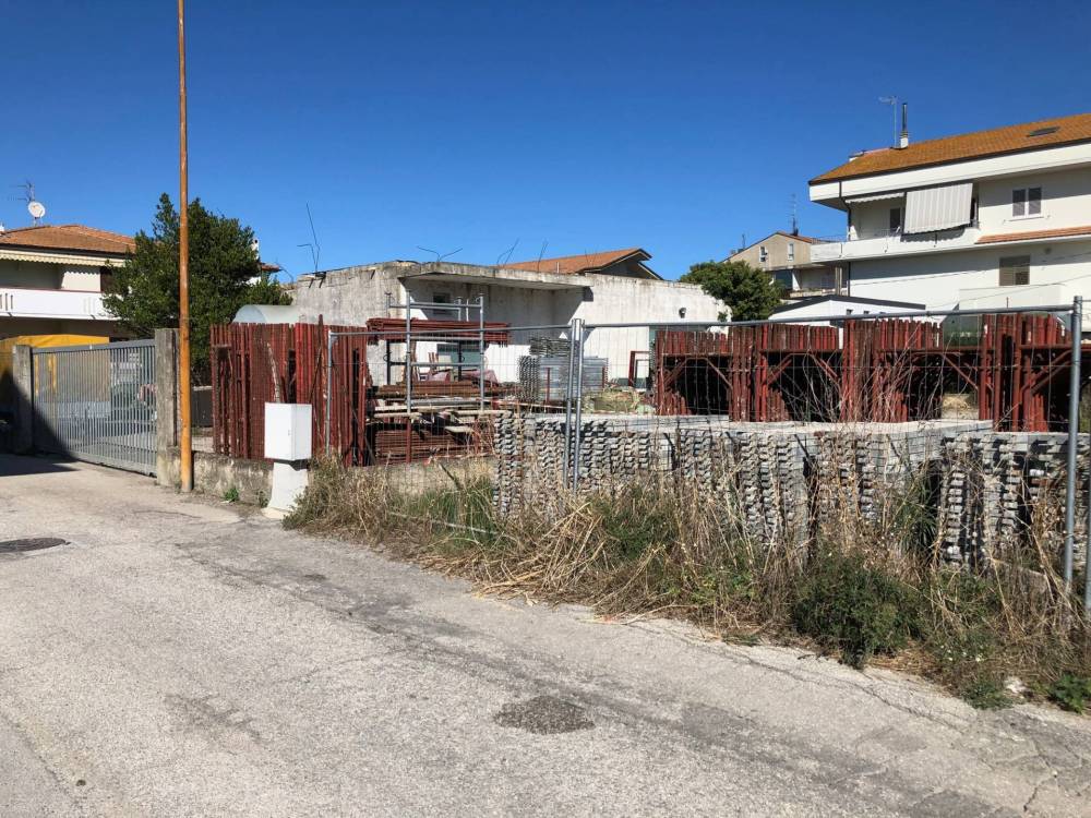 ampia corte pianeggiante di 1.700 mq. ad uso stoccaggio con fronte strada di 59,00 mt. e parzialmente recintata con muretto in cls. e rete metallica con 2 accessi carrabili