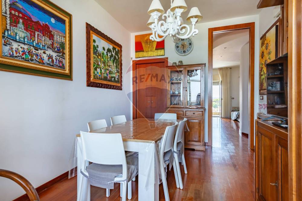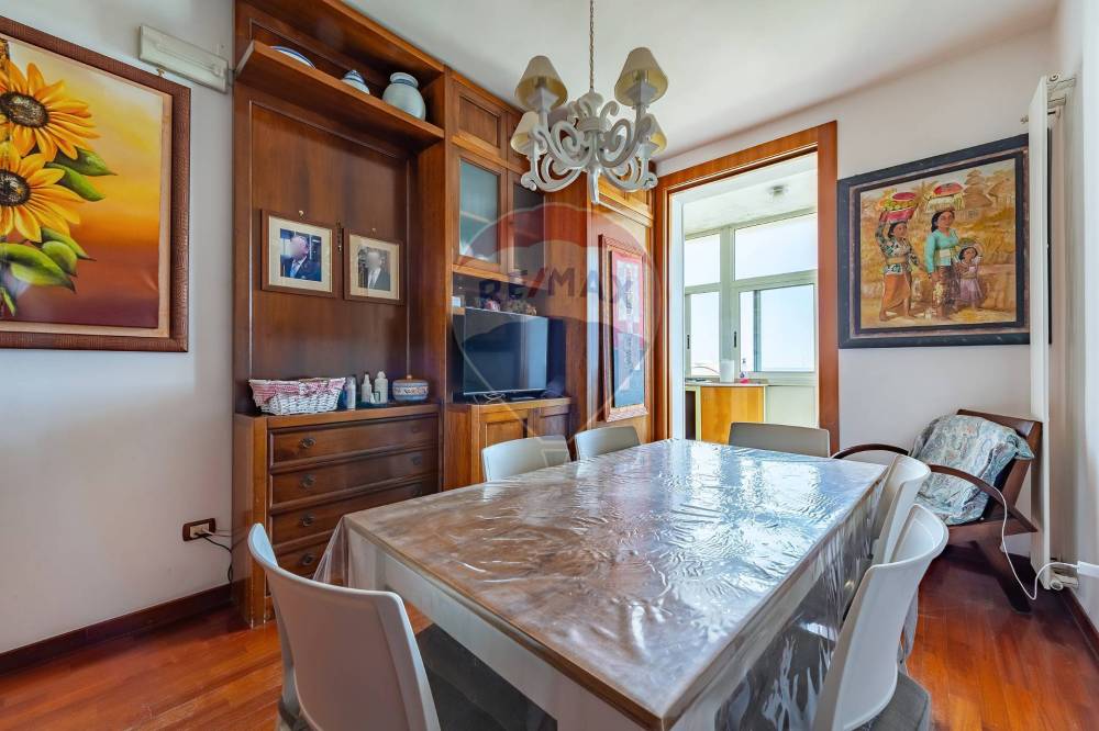 Entrando, ti accoglie un elegante e luminoso soggiorno, con un affaccio su un ampio balcone terrazzato, perfetto per momenti di relax o cene all'aperto. Da qui, si apre uno studio o una possibile camera aggiuntiva, offrendo flessibilità e comfort. La zona pranzo, adiacente, si distingue per un balcone verandato che ospita una cucina funzionale e ben disimpegnata, ideale per le tue ricette preferite da preparare con una vista mare da sogno.