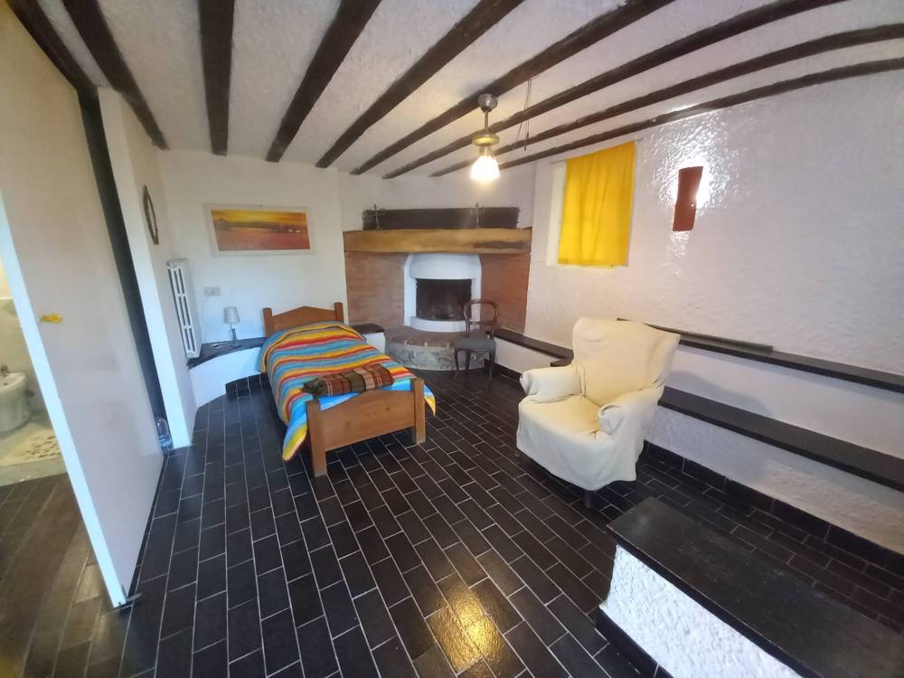 Rif. 2015P081 - L'immobile ha due ingressi, sia nella zona giorno che nella camera, ed è composto da ampia zona giorno con camino ad uso barbecue, piccolo angolo cottura con ripostiglio, un bagno con doccia ampia, camera matrimoniale con camino e portafinestra che si affaccia nell'ampia resede privata.