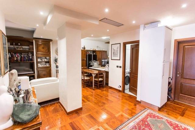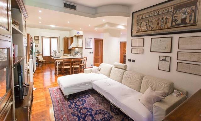 L'appartamento, completamente arredato, è composto da 4 ampi locali, tra cui una luminosa sala da pranzo, una cucina abitabile, tre camere da letto e due bagni.