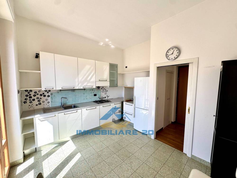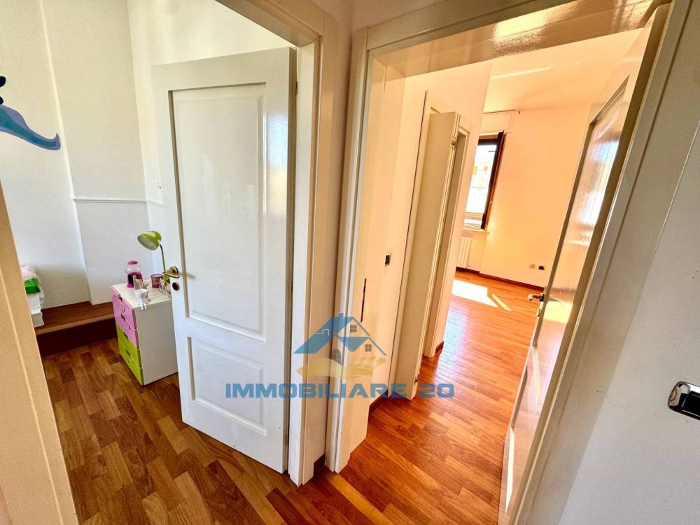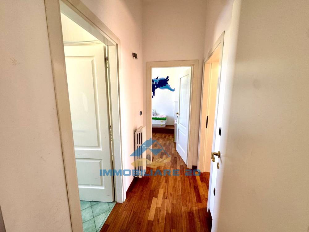 soggiorno, cucina abitabile, studio, disimpegno, due camere, due bagni, balcone a livello.