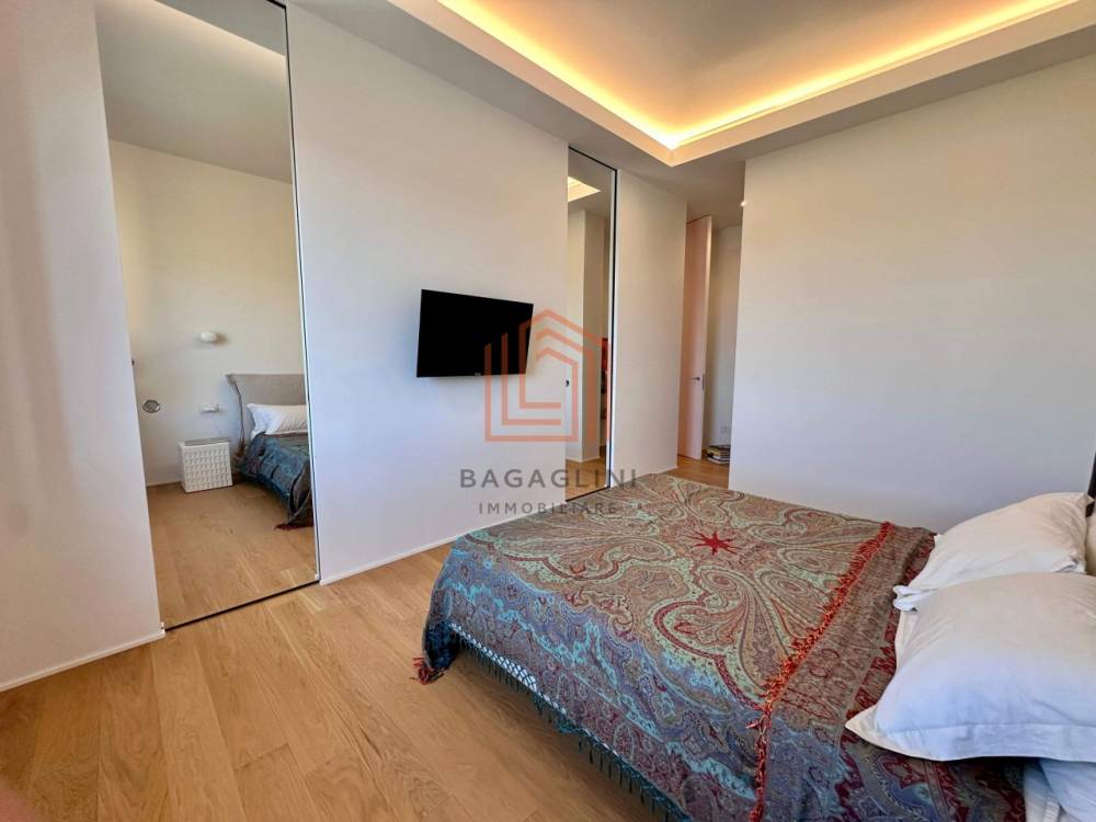 La zona notte comprende una spaziosa camera matrimoniale con cabina armadio ampia ed organizzata che conferisce ulteriore comfort e funzionalità, una seconda camera versatile che si può adibire anche a studio.