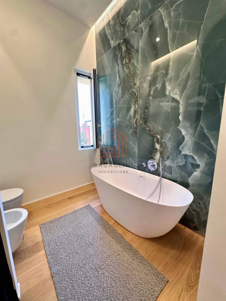 Nel Corridoio troviamo due splendidi bagni ampi e finestrati, gli ambienti sono rifiniti con uno stile raffinato e moderno, uno con una grande doccia Walk-in; l'altro con una vasca Stand-alone bellissima.