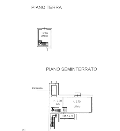 Al piano terra si trova un locale principale, mentre il piano seminterrato comprende un ufficio, un bagno e una cantina.